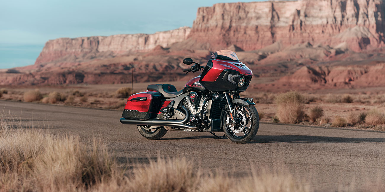 The Indian Challenger 125th Anniversary Edition proves performance leadership isn’t theoretical - it’s proven at speed. Its chassis-mounted fairing, blacked out finishes, and the liquid-cooled PowerPlus 112 cu-in engine are adorned by meticulously hand-painted details and 125th anniversary badging throughout.